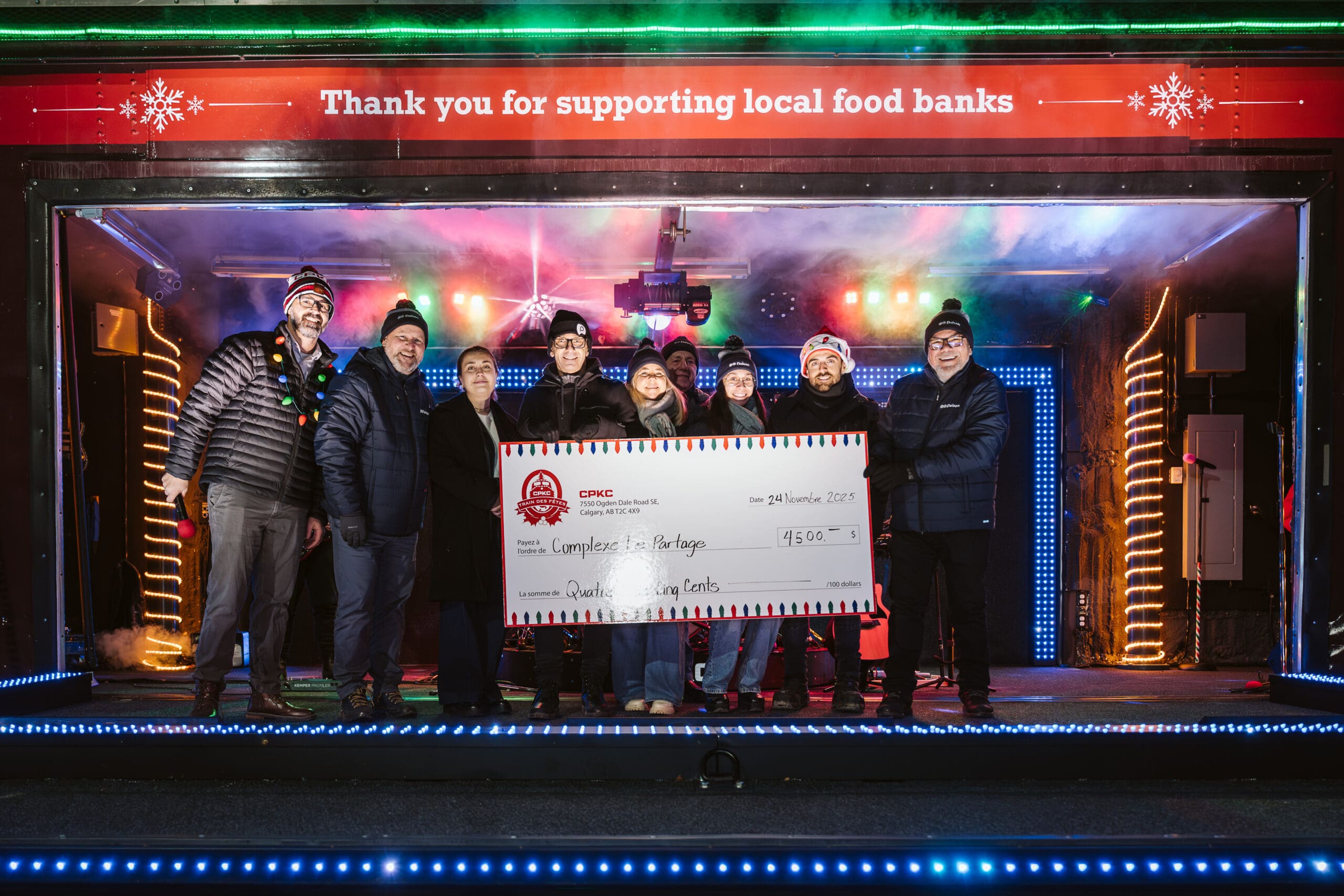 CPKC remet 4 500 $ à la guignolée à Delson lors du Train des Fêtes